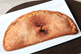 Masa de torta de huevo, estirada muy fina, rellena de chocolate negro. El chocolate, el azúcar y un puntito de canela, cocido en la piedra del horno, podemos imaginar el resultado.