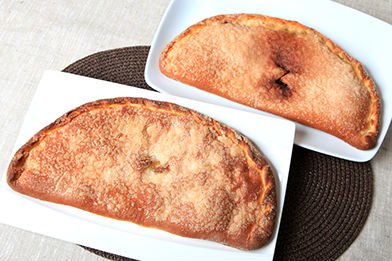 Masa de torta de huevo, estirada muy fina, rellena de manzana, cortada muy fina, azúcar con canela… Cocida en la piedra del horno, el resultado es un contraste delicioso entre la dulzura del azúcar con canela y el punto de acidez de la manzana.